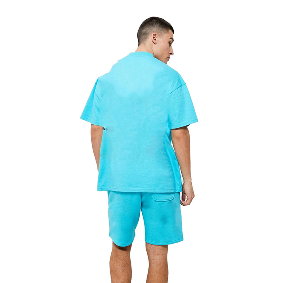 Wholesale Summer Sets Blue Color Half Sleeves T Shirts & Shorts Plain Dyed Training Wear Shorts With Shirts