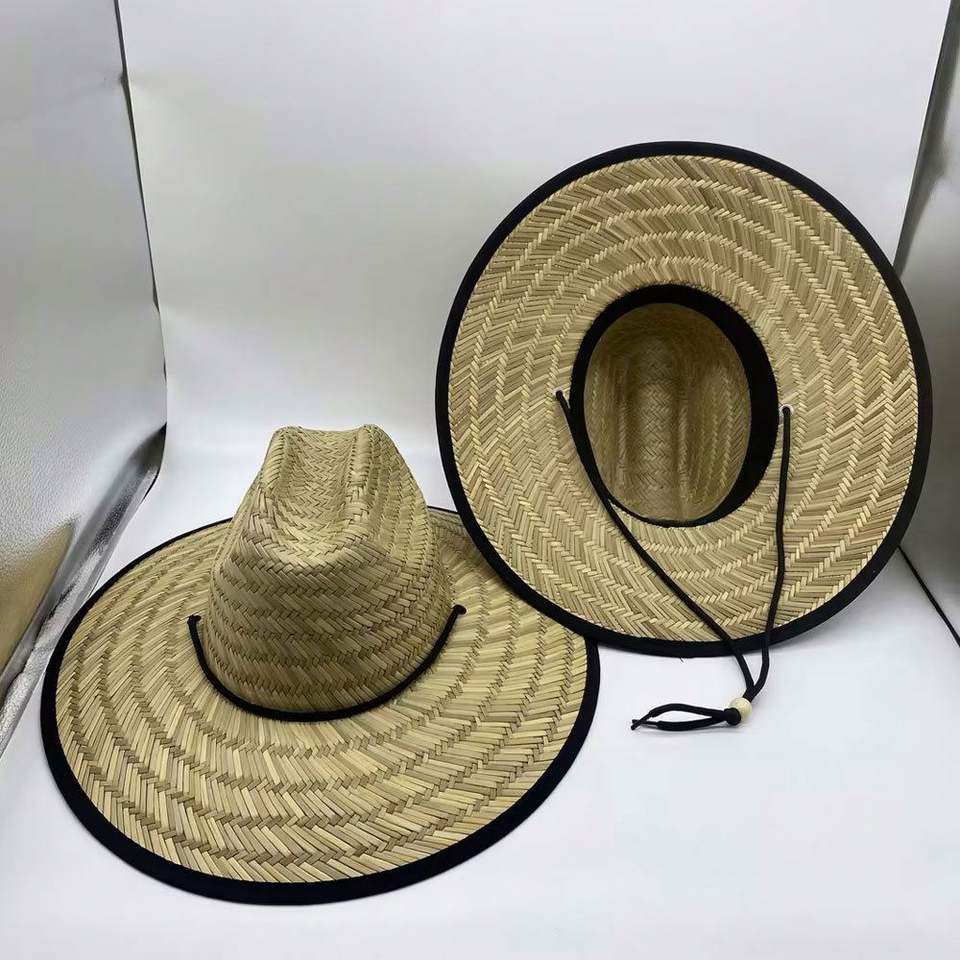 Wholesale Summer Sunshade Natural Lifeguard Straw Hats Custom Logo Patch Surf Safari Panama Straw Hat Beach Hat
