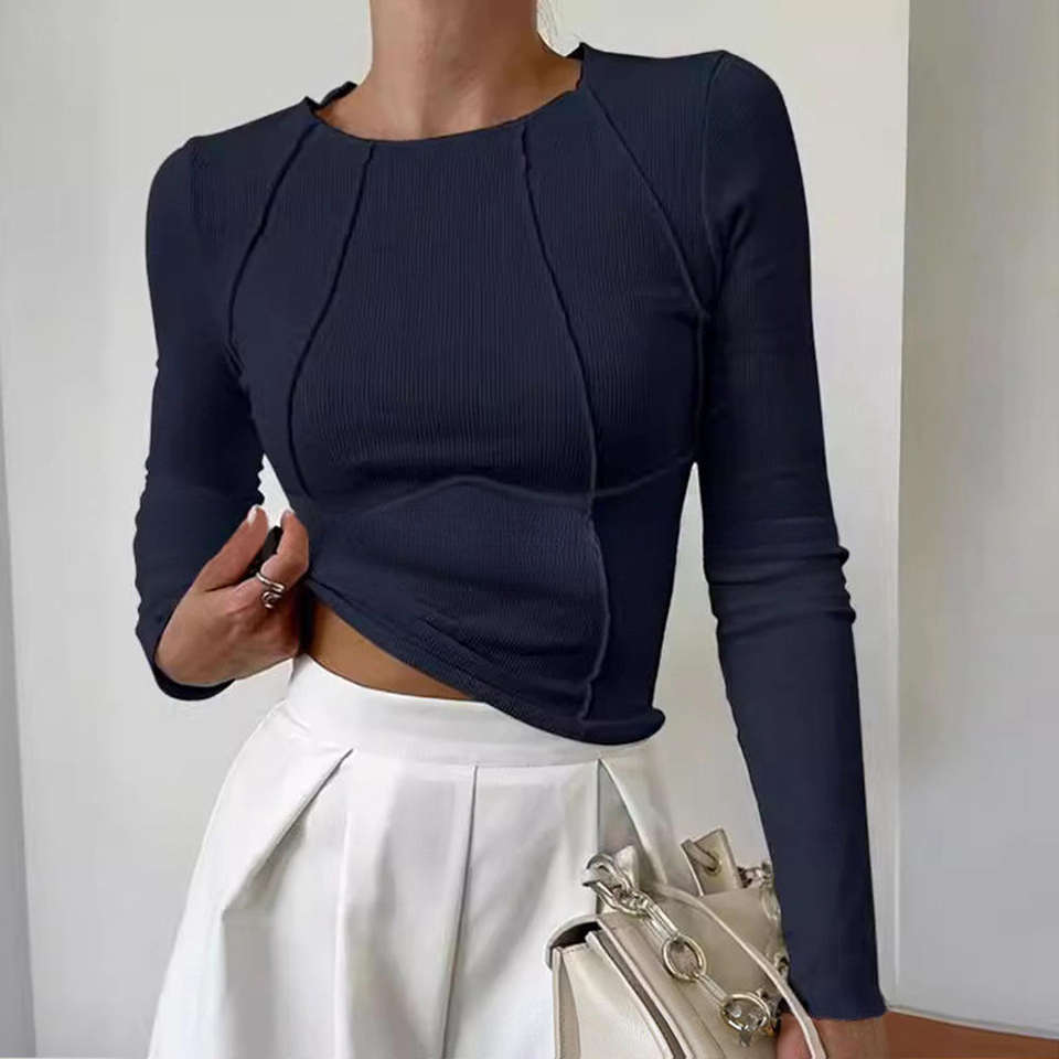 Wholesale Summer Women Slim Casual T-Shirt Long Sleeve V-neck Solid Bottoming Shirt Lady Pullover Blouse Top for Girls