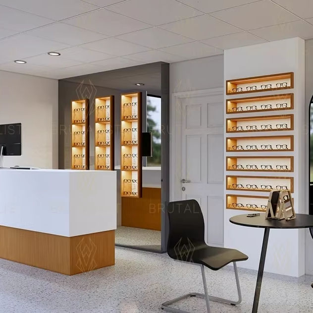 Wholesale Wooden Sunglasses Display Shopfittings Optical Shop Unit with LED Lighting for Interior Design