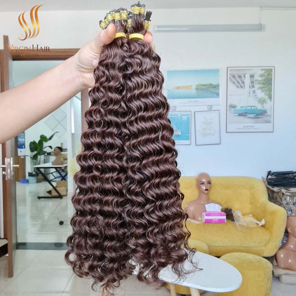 Wholesale Super Double Drawn I Tip Human Hair Extensions Curly Hair Keratin itip Vietnamese Hair
