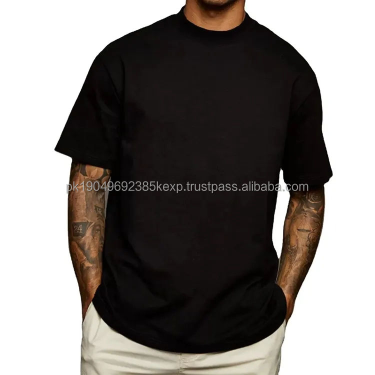 Wholesale Super Heavy 210gsm Thick Oversized Drop Shoulder T-shirt Mock Neck Plain 100 Cotton Mens Boxy Fit t Shirt