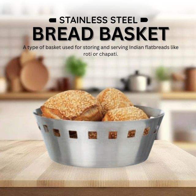 Wholesale Supplier Kitchen Hotel Commercial Use Stainless Steel Round Shaped Bread Basket Roti Chapati Naan Tokri Serveware
