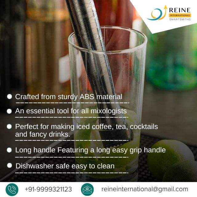 Wholesale Supplier Long-Handle Cocktail Muddler Black Plastic Bar Tool for Crushing Fruit Pressing Mint Sugar Cubes Portable
