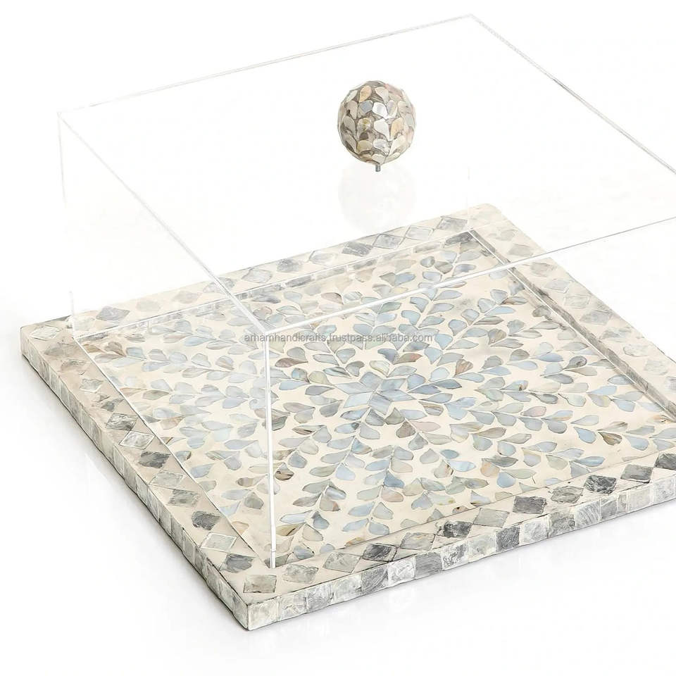 Wholesale Supplier Luxury Crafts Round Glass Cake Stand With Bone Inlay Plate Type Platter for Home Wedding Table Top Decoration