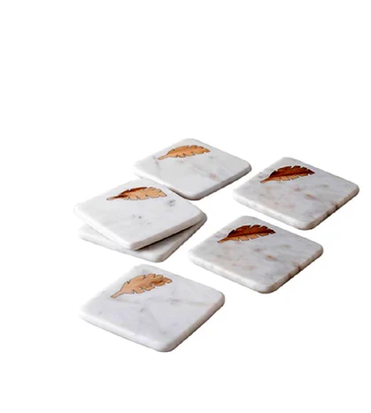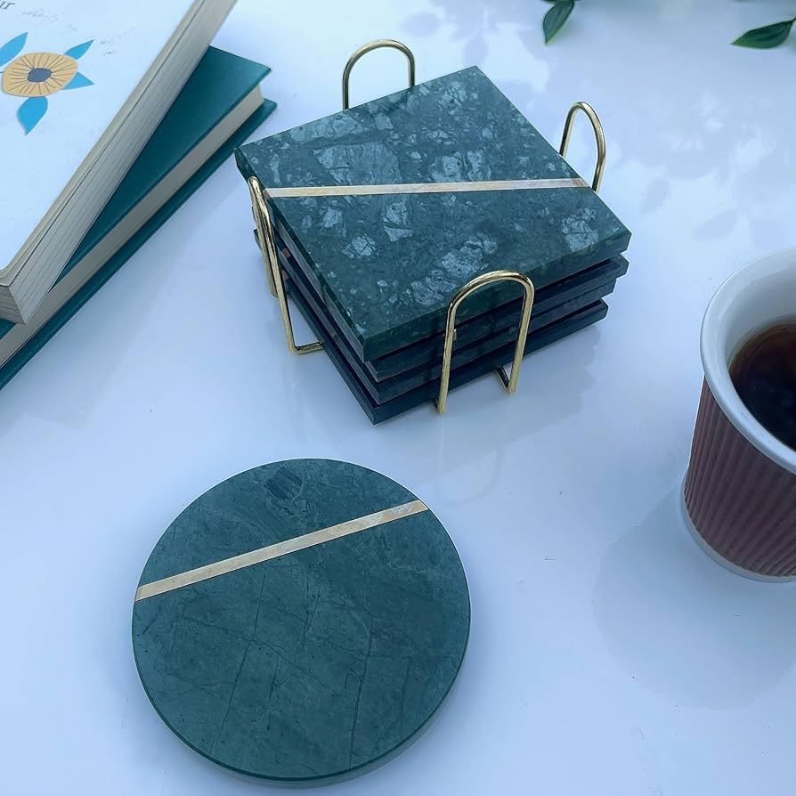 \Wholesale Supplier Marble Coffee Mug Coaster With brass Holder Stand Table Mat Unique Custom Coaster