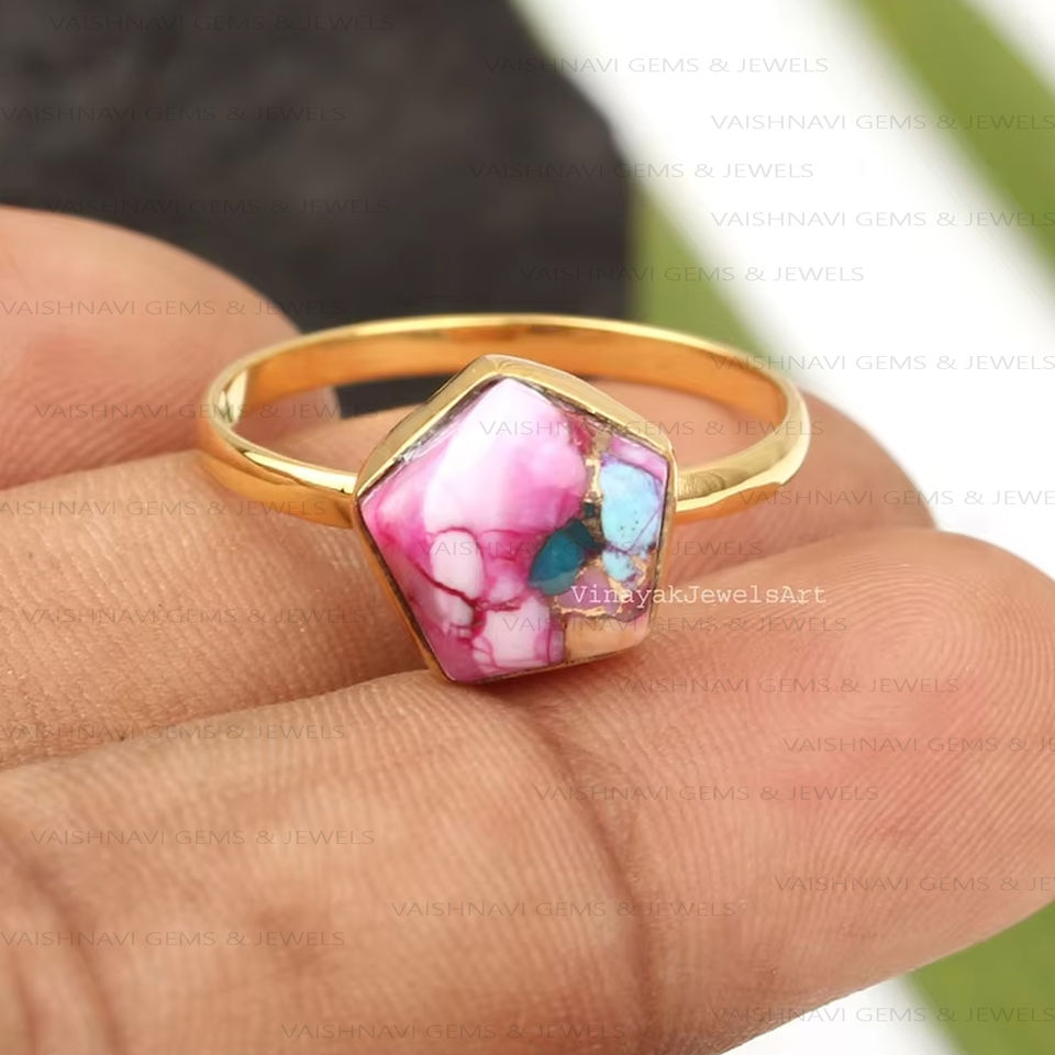 Wholesale Supplier Orange Dahlia Copper Turquoise Ring 10x10mm Star Shape 925 Sterling Silver 18K Gold Plated Eternity Vermeil