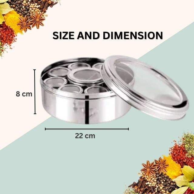 Description:Stainless Steel Indian Masala Dabba Spice Container