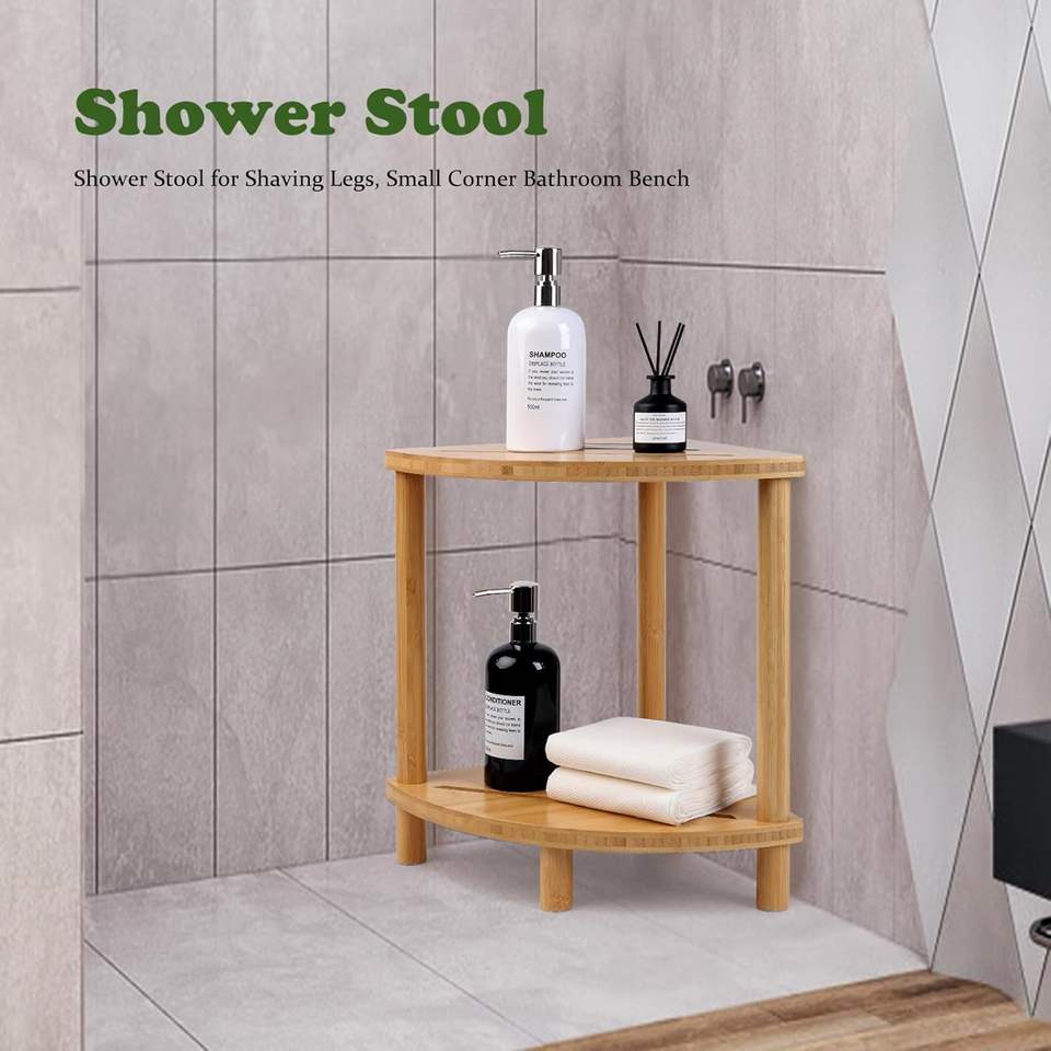 Wholesale Supplier Toilet Corner Shelf Triangle Bamboo Corner Rack Size M Beige Color High Quality Bathroom Furniture