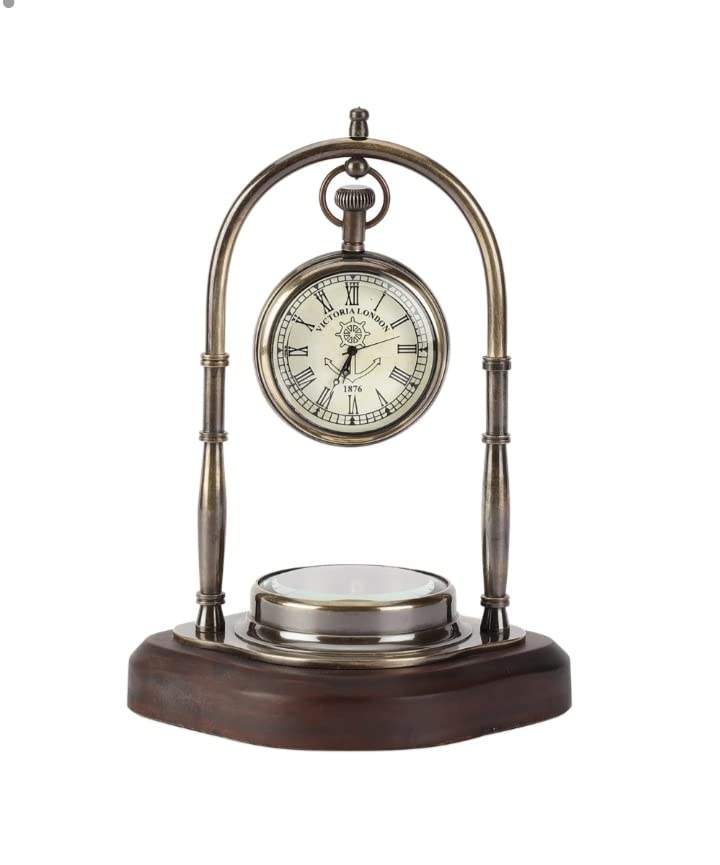 Wholesale Supplier Wheel Telegraph Clock With Compass Pen Holder Antique Finished On Wooden Base Latest Design Beautiful Clock