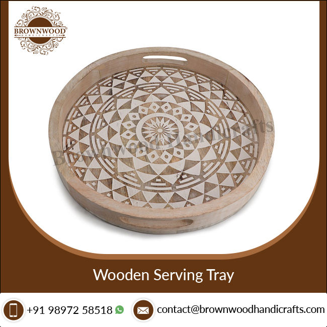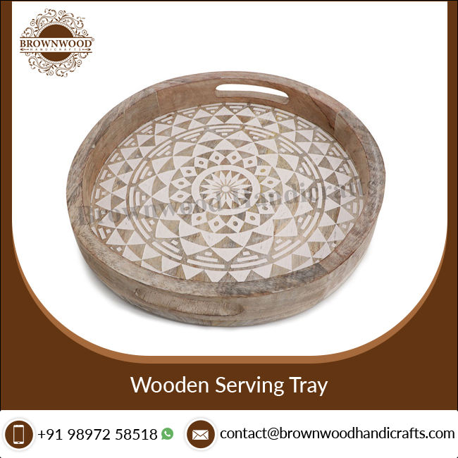 Wooden Hand Carved Serving Tray With HandlesProduct Name