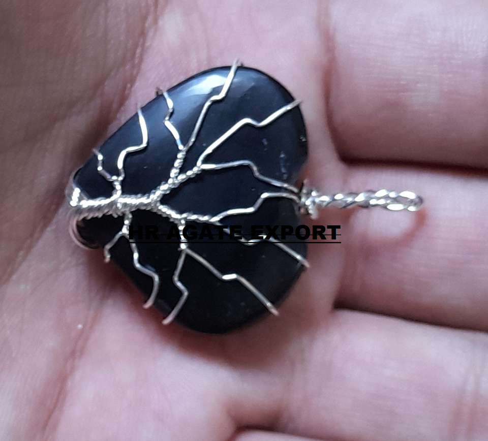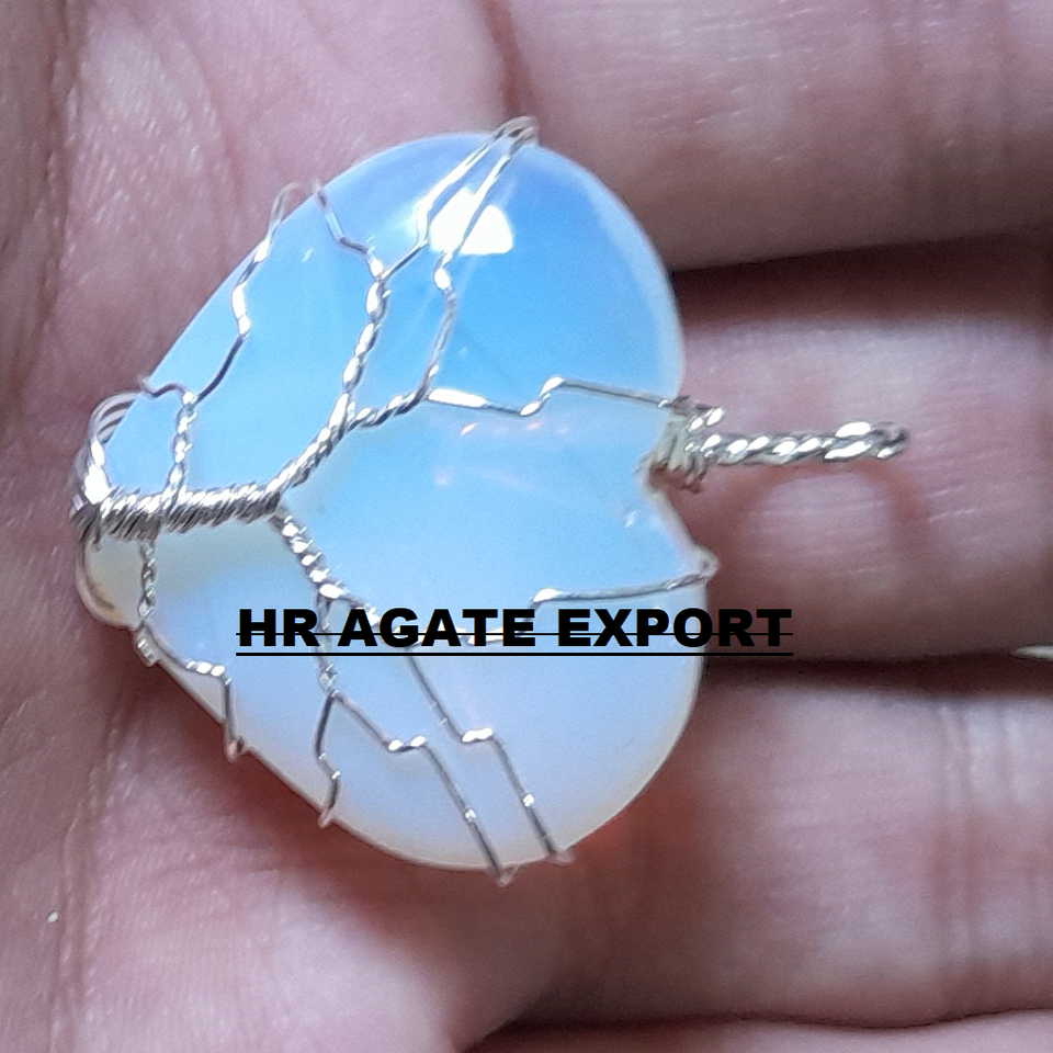 Wholesale Supplier's Natural Opal Opalite Gemstone Heart Tree Life Pendant Necklace Feng Shui Style Wire Wrapped