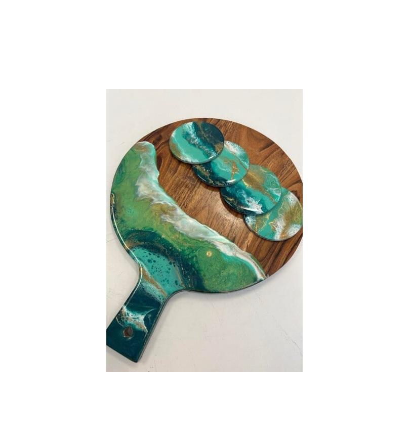 Wholesale Price Exporter Mango Wood Resin Chopping Board Handmade and Exporter Home Kitchen Wood Cutting Board With Handle