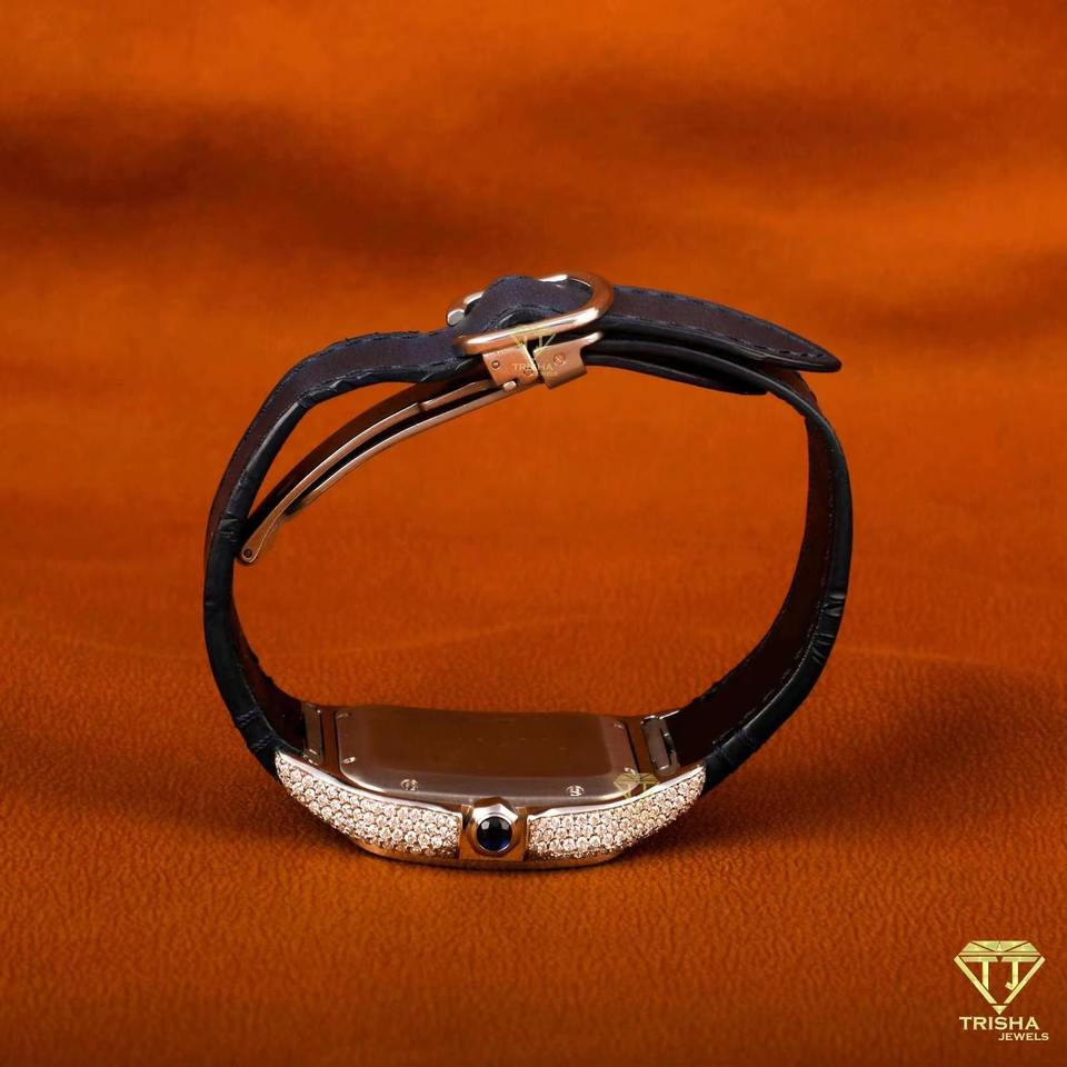 Wholesale Supply Authentic Black Leather Lab Grown Diamond Watch Trendy Luxury Accessory for Men and Women Available for Sale
