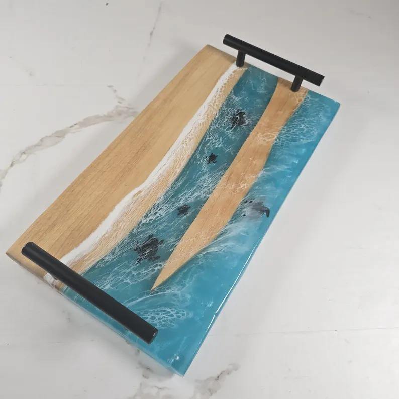 Wholesale Supply Of Handmade Resin and Wood Tray Multi Functional Organizer for Vanity Bedroom Living Room and Office For Sale