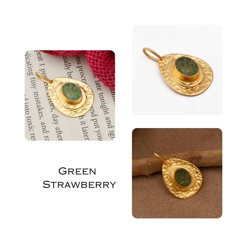 Wholesale Supply of Green Strawberry Quartz Gemstone Pendant Necklace Jewelry with Gold Plated Collet Set Single Loop Jewelry