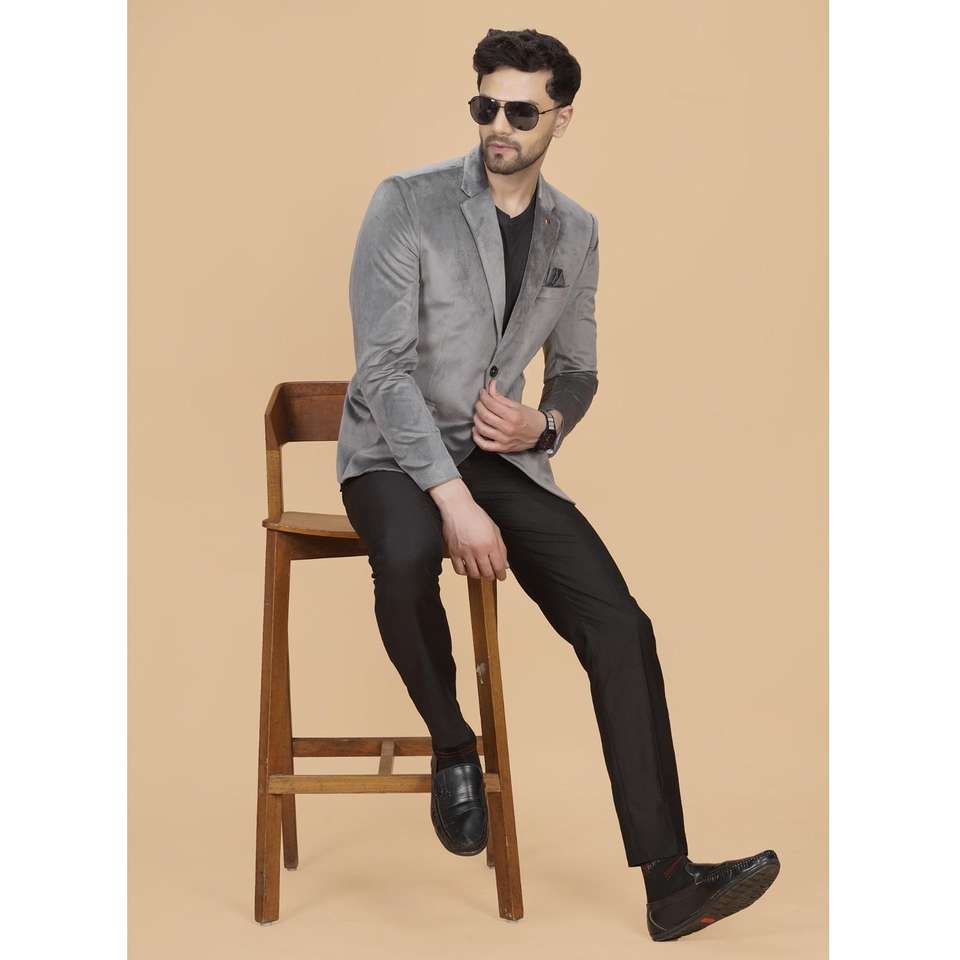 Wholesale Supply of Mens Gray Velvet Blazer Slim Fit Designer Evening for Celebration and Night Functions In Bulk Quantity