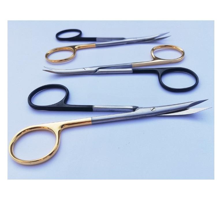 Wholesale TC Super Cut Iris Manual Scissor German Stainless Steel Curved Blades Gold Black Plated Handle 11.5cm for Nasal