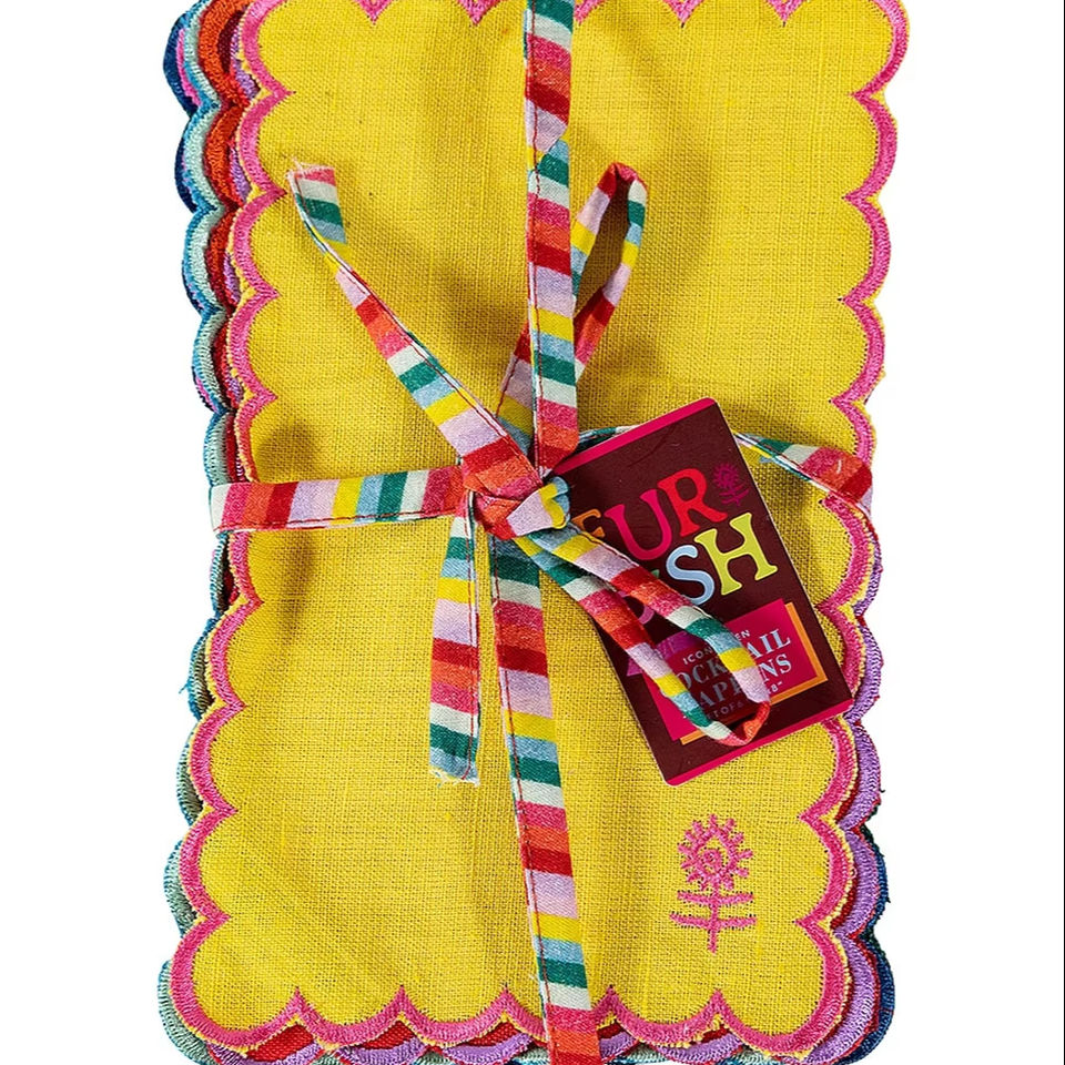 Embroidered Scalloped Home Hotel Elegant Table Linen Cotton Napkin