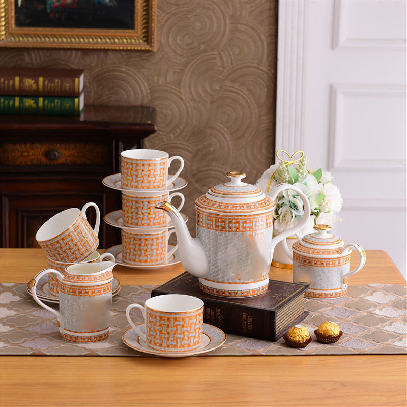 Wholesale Tableware Set European Style Ceramic Bowl and Plate Coffee Set Coffee Pot
