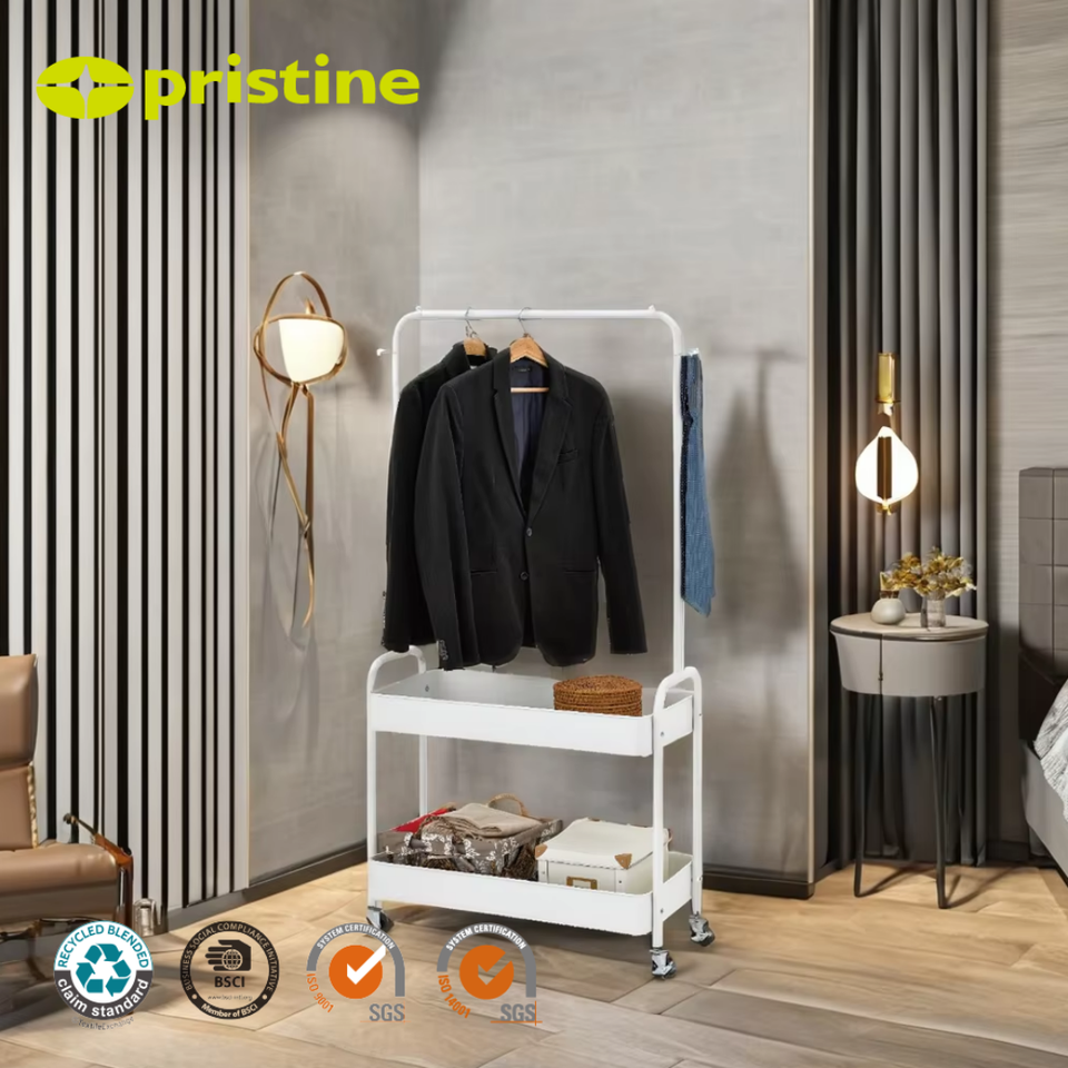 Wholesale Taiwan Household Storage Furniture Laundry Garment Rack with 2 Metal Basket Cart for Wardrobe Use