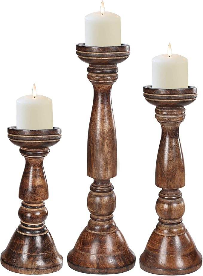 Wholesale Tall Wooden Candle Holders (12"X4.5") in Rustic Burnt Finish Perfect for Farmhouse Decor Mantle or Table Centrepiece