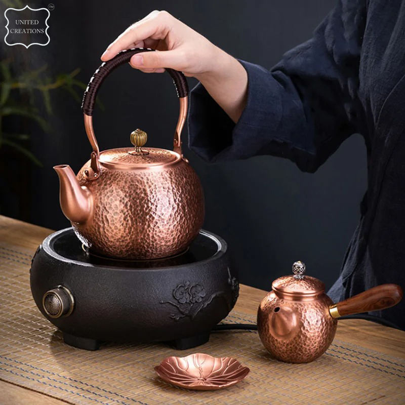 Wholesale Teapot Pure Copper Boiling Water Tea Kettle Antique Copper Tea Pot Handmade Carved Pot Brass Tea Set Boil Water Pot