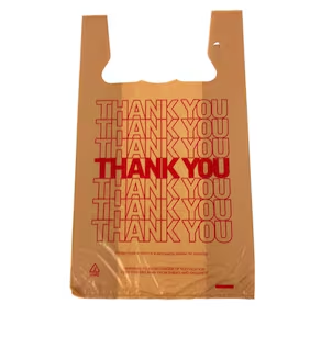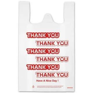 Wholesale Recyclable Clear Plastic T-Shirt Bags Gravure Printed Logo 'Thank You' for Supermarket Packaging Food Vegetables
