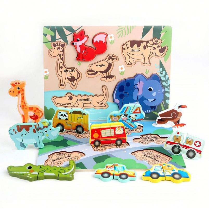 Wholesale Three-dimensional Buckle Scene Puzzle OEM ODM Kids Early Learning Enlightenment Dinosaur Cognition Scratching Board