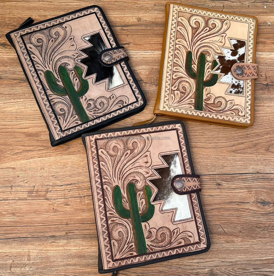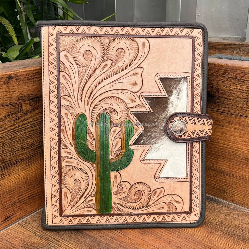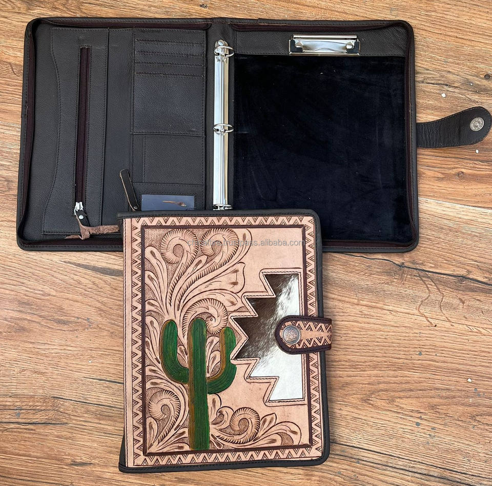 Hand Tooled Cowhide Leather Zipper File FolderProduct name