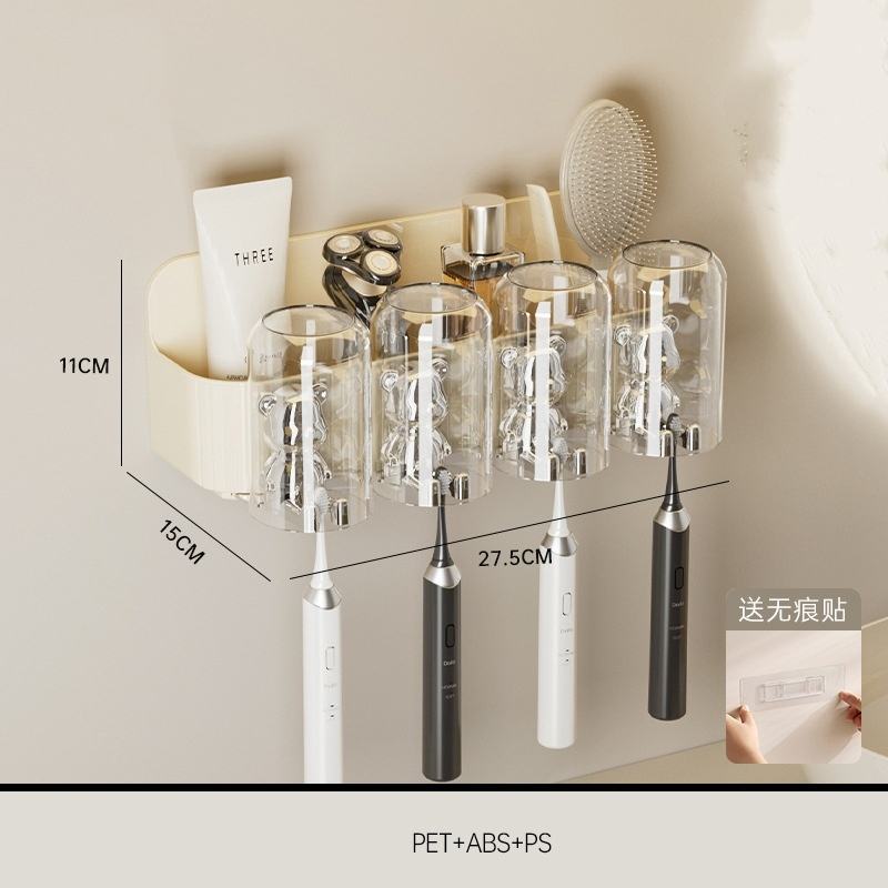 Wholesale Toothbrush Holder Mouthwash Cup Bathroom Shelf Free Punching Suction Wall Type Holder With Cup