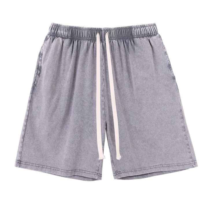 Wholesale Top Quality Fit Custom Logo Acid Wash Quick Dry Workout Solid Colour Blank Casual 100%Cotton Men Shorts With Pockets
