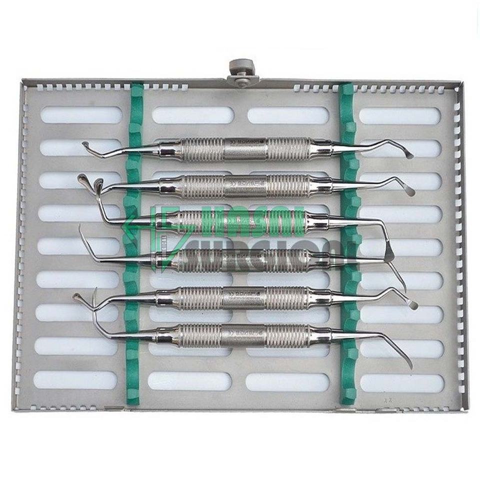 Wholesale Top Quality Medical Dental Sinus Lift Curettes Kit of 6 Pieces with Cassette by Hasni Surgical CE / ISO Customer Log