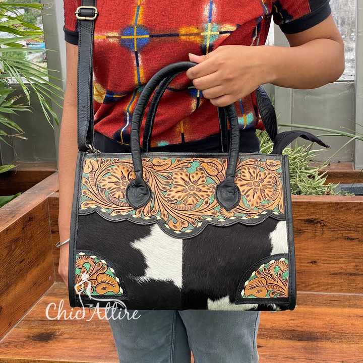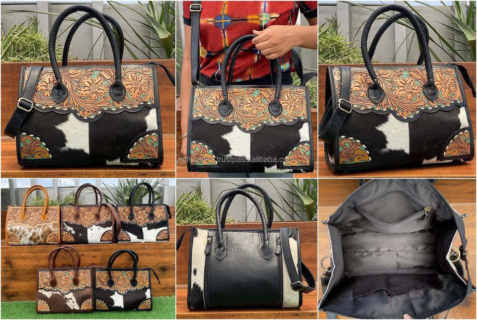 Product name:Hand Tooled Cowhide Leather Tote Bag