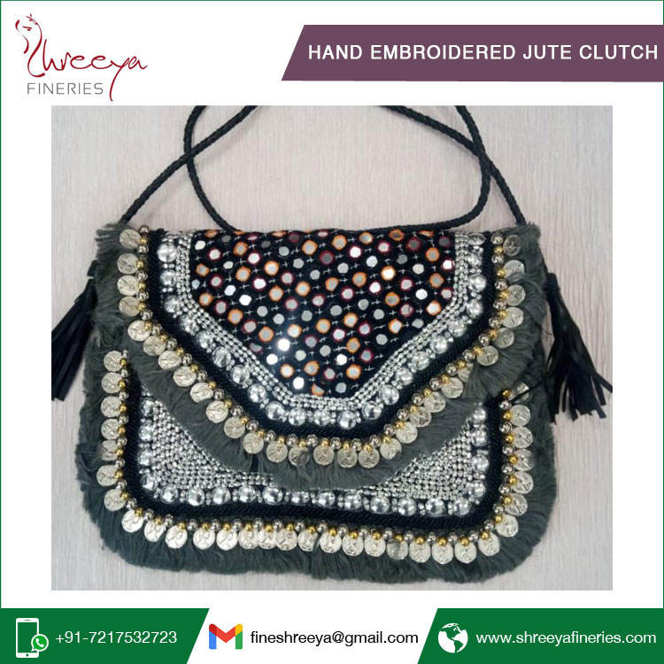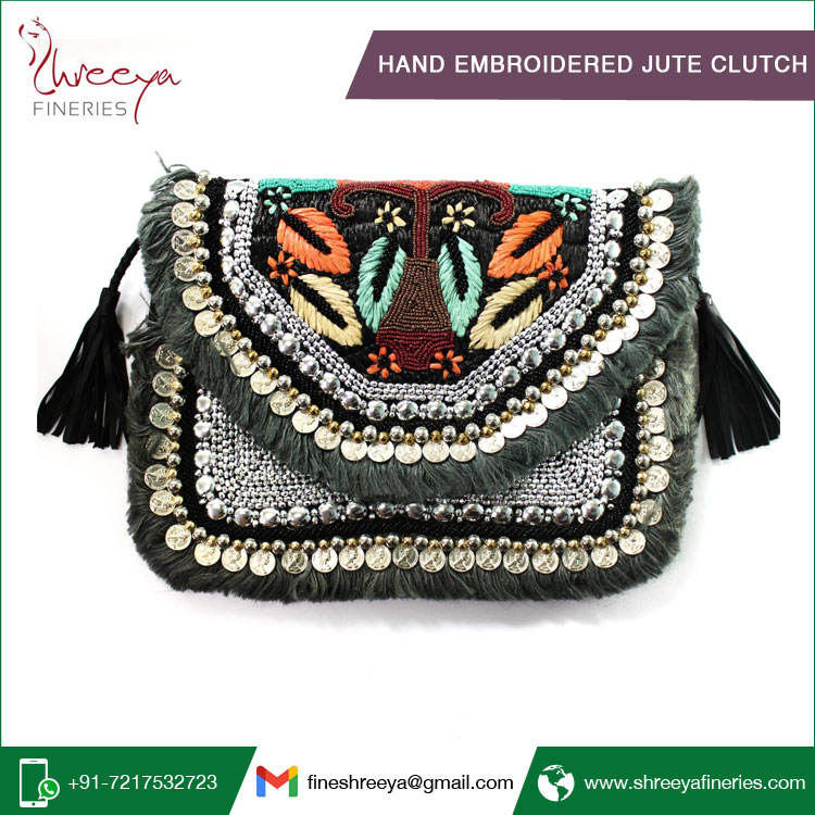 Hand Embroidered Jute Clutchmodel number
