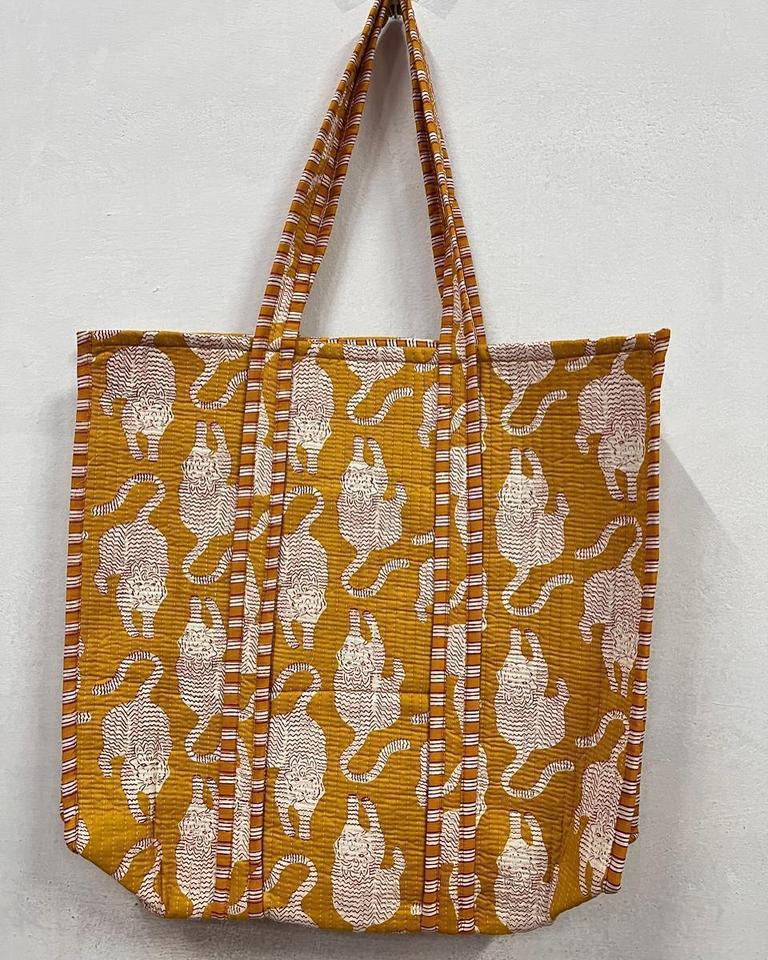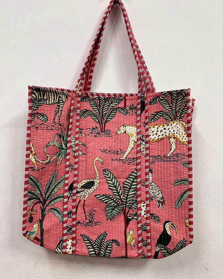 Wholesale Traditional Indian Cotton Handbags for Women Ethnic Bohemian Quilted Style Chains Women's Palm Tree Print Gifts Bags