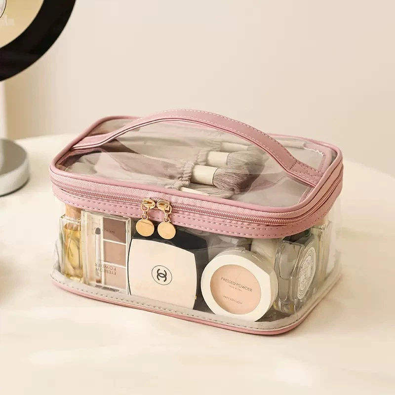 Wholesale Transparent Makeup Bag Cosmetic Organizer Pink Waterproof Travel Makeup Bag Pvc Makeup Bags Custom Logo