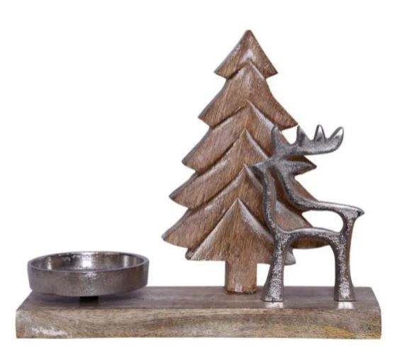 Wholesale Trending Handmade Christmas Tealight Candles Aluminum T-Light Silver Finished Wooden Deer Top for Home Decoration