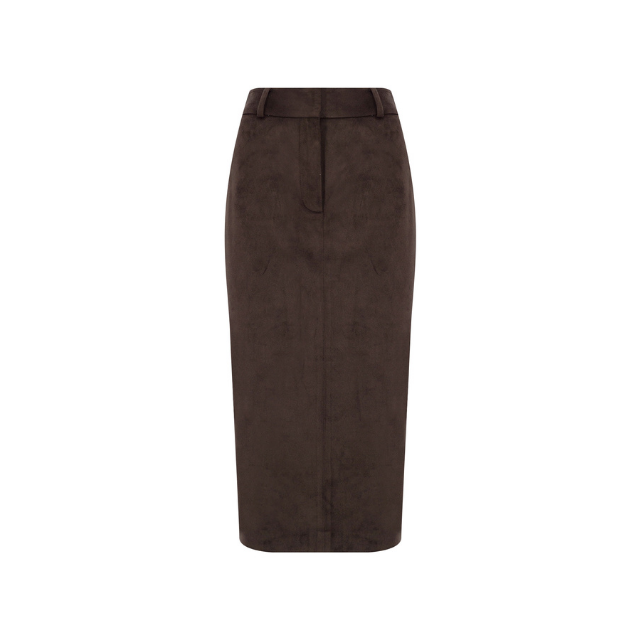 Wholesale Trendy Brown Faux Suede Skirt Women's Elegant High Waist Pencil Midi Skirt Office Wear Business Casual Fashion Apparel