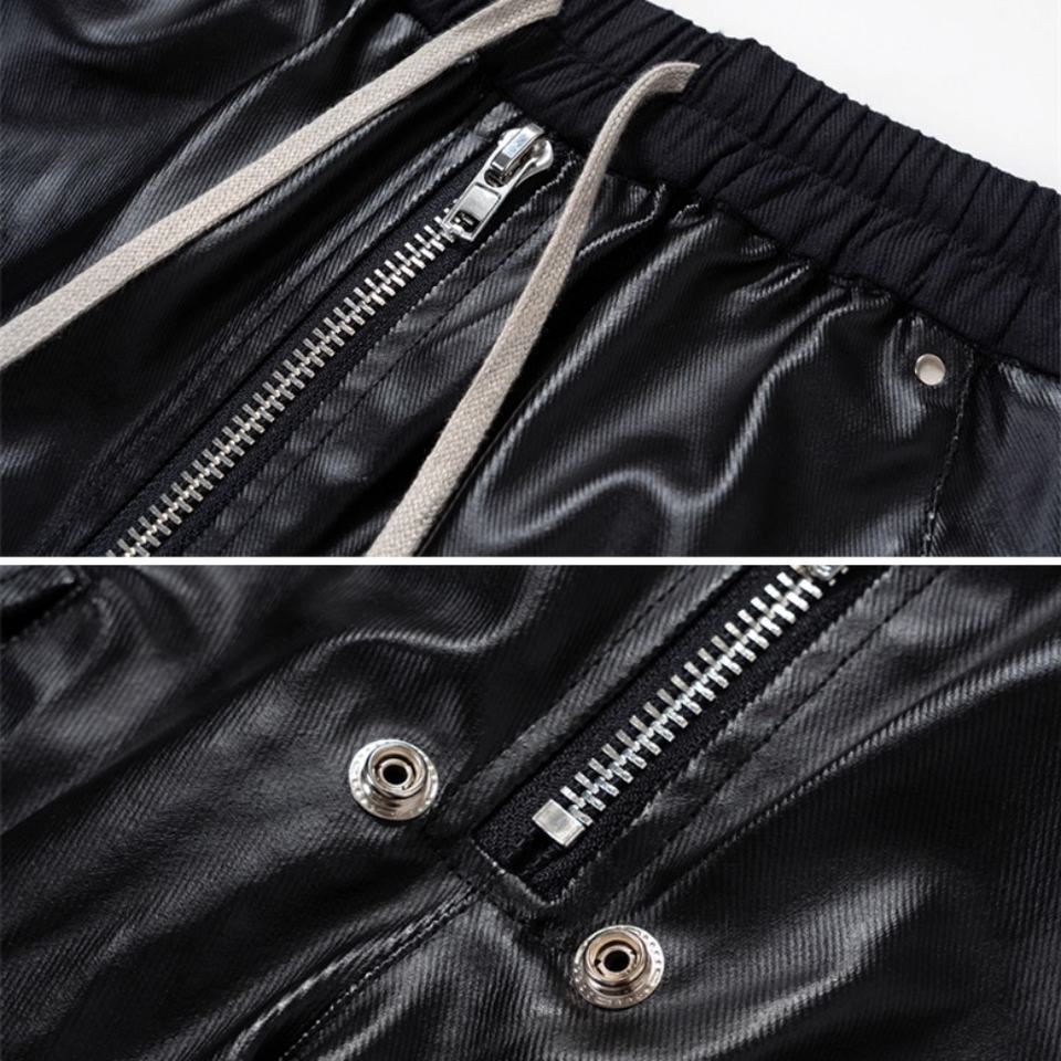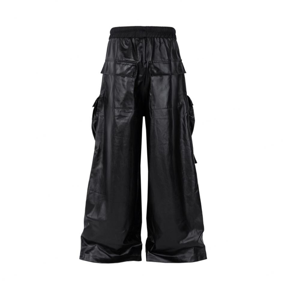 Wholesale Trendy Dark Multi-pocket Cargo Straight-leg Casual Drawstring Matte Waxing Coated Floor-length Baggy Pants for Men