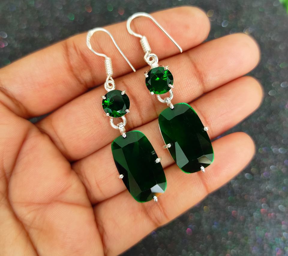 Women's Trendy Silver Plated Emerald Crystal Drop Earrings Wholesale Bulk Fashion Dangle Wedding Accessories Cheap Price