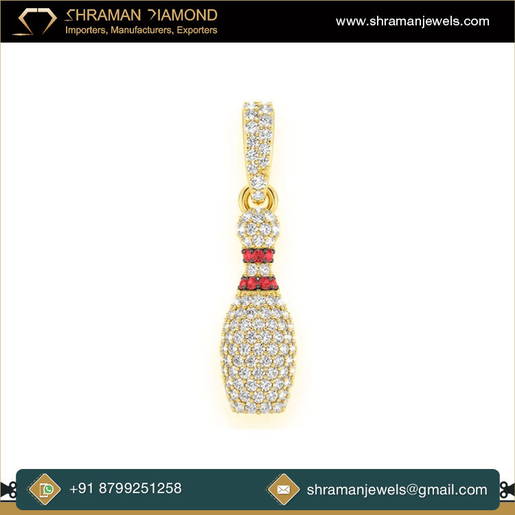 Wholesale Trendy Fashion Jewelry Iced out Custom Bowling Pin Sports Dainty 10K Solid Gold Lab Grown Diamond Necklace icy Pendant