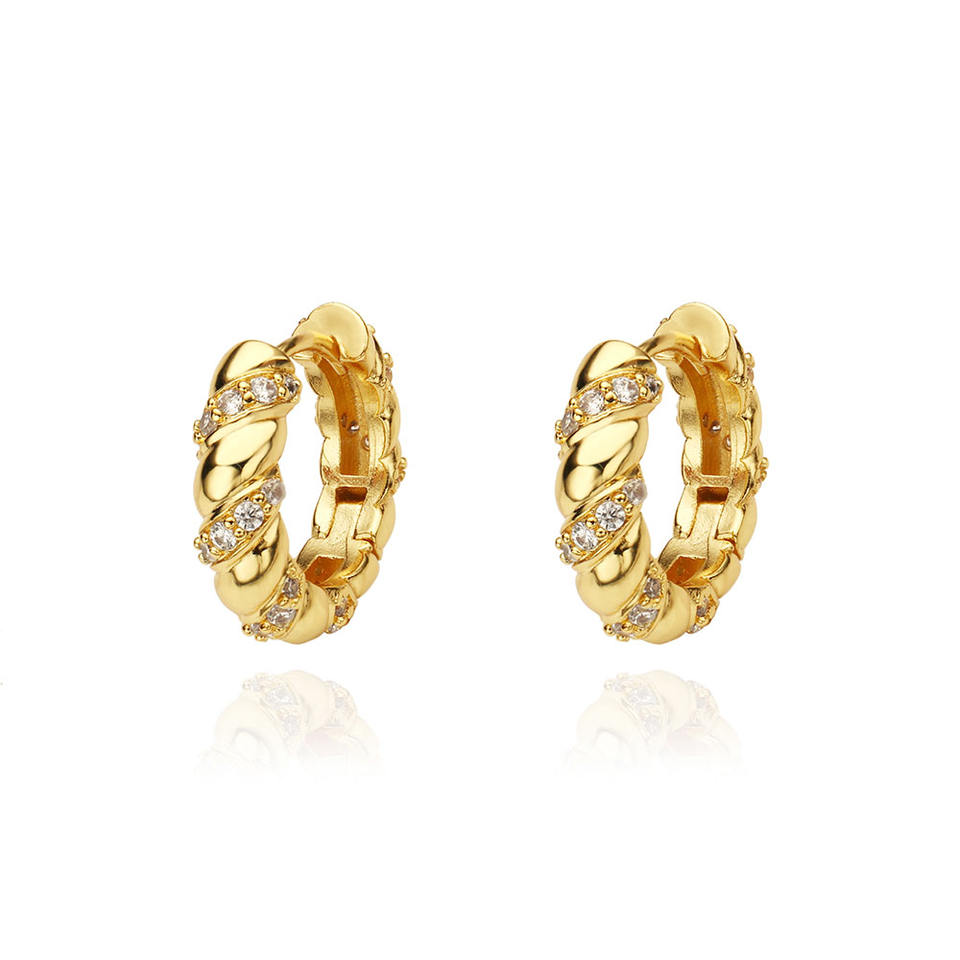 Wholesale Trendy Retro Dainty Cz Jewelry Women 18K Gold Plated Twisted Rope Chunky Huggie Hoop Earring