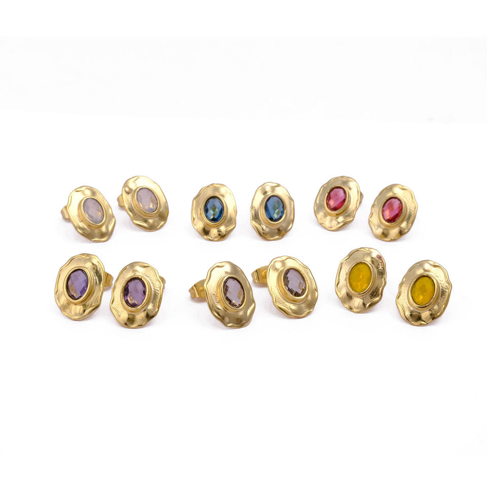 Wholesale Trendy Yellow Chalcedony Oval Stud Earrings Gold Plating Hammered Texture Bezel Set Brass Stylish Wholesale Supply