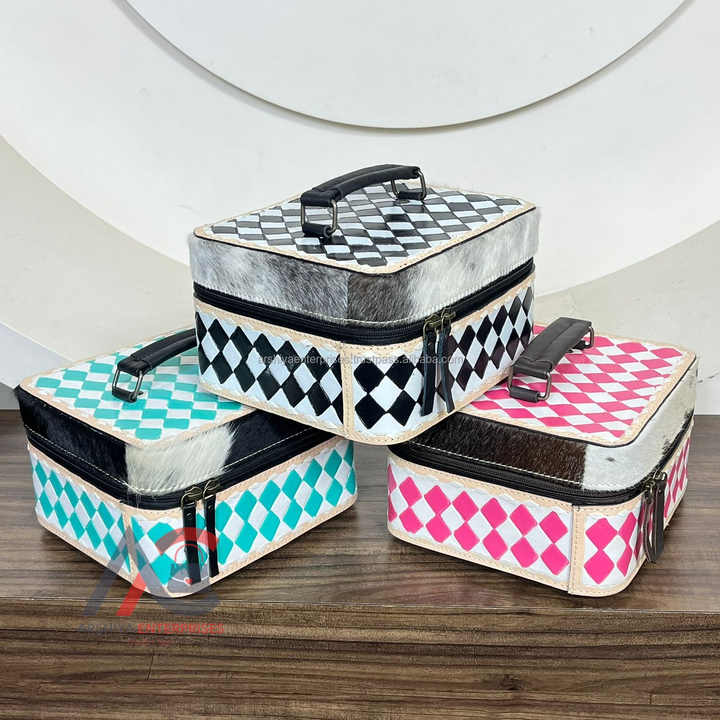 Product name:Hand Tooled Checkered Leather Large Jewelry Case