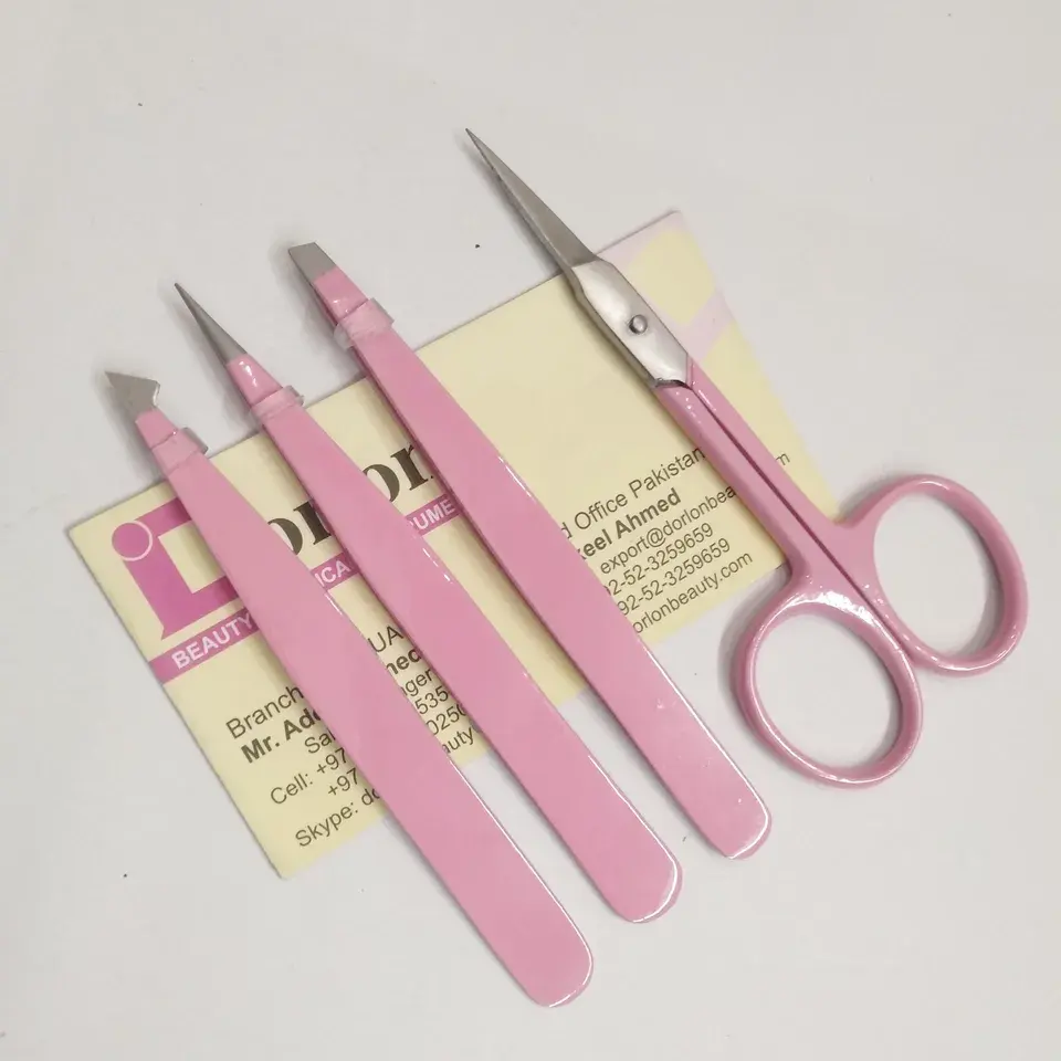 Custom Nude Beige Pink Eyebrow Tweezers Spring Scissors Set Private Label Sustainable Precision Tweezers Brow Trimming Scissor