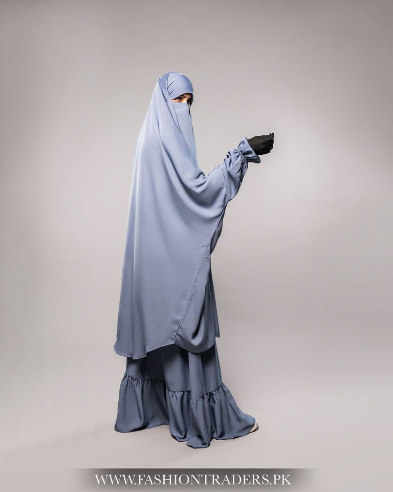 Product name:Two Piece Elastic Ruffle Sleeves Jilbab With Ruffle Skirt