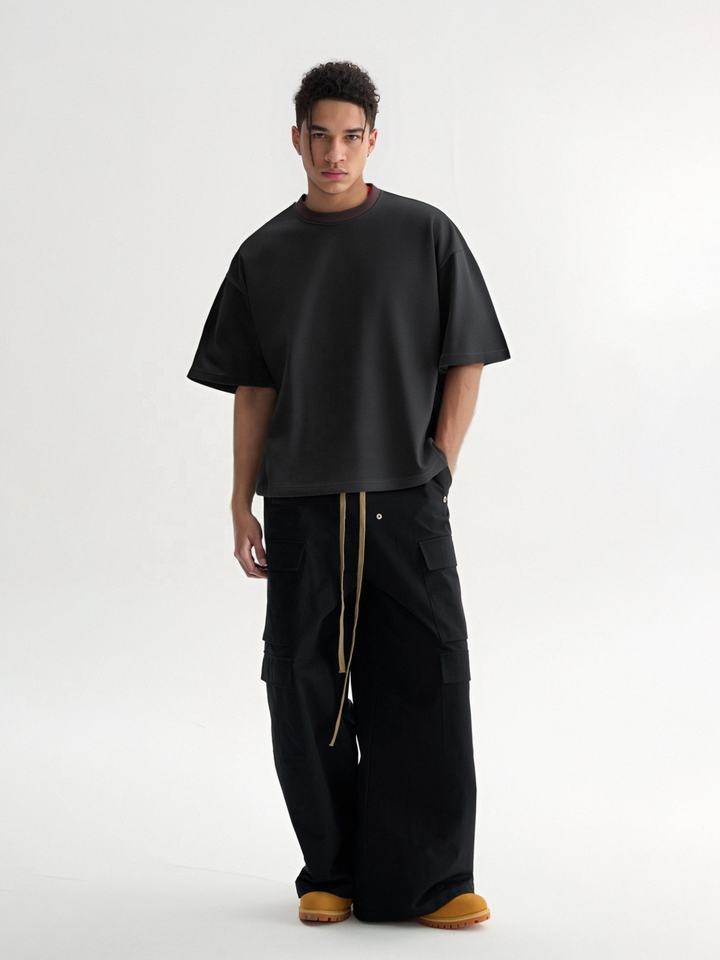 Wholesale Two Sided T-shirt Logo T Shirt Plain Cotton Boxy Cropped Contrast Color Black Red Yellow Gray Men Tshirt for Clothing