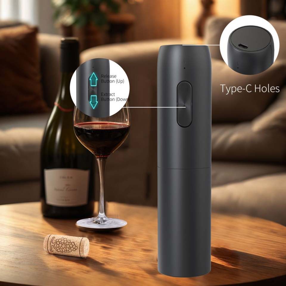 Wholesale USB Rechargeable Electric Corkscrew Wine Opener Gift Set Corkscrew with Aerator Vacuum Stopper and Wine Bottle Opener