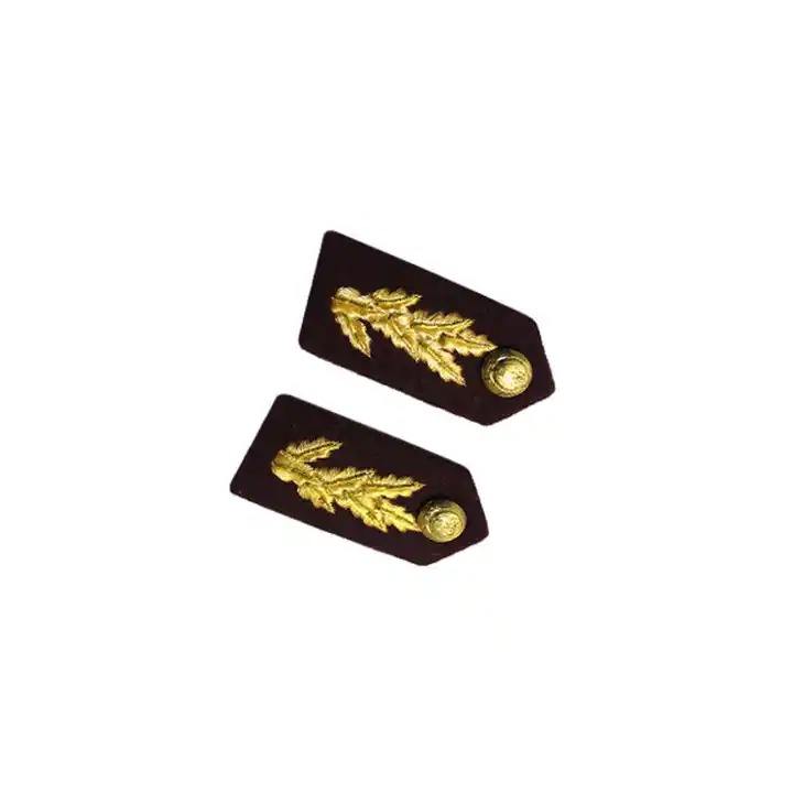 Wholesale Uniform Collar Patches on Black Fabric and Hand Embroidery Gold Wire Brass Button